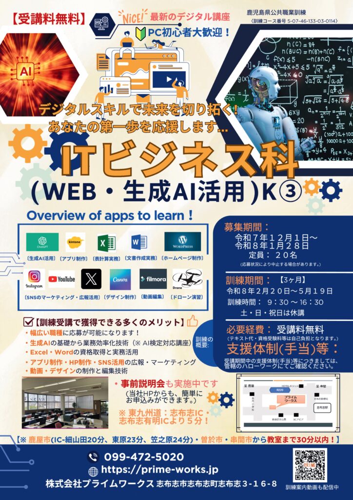 ■ 『ITビジネス科(WEB・生成AI活用)K③』に、興味を持っていただきありがとうございます。